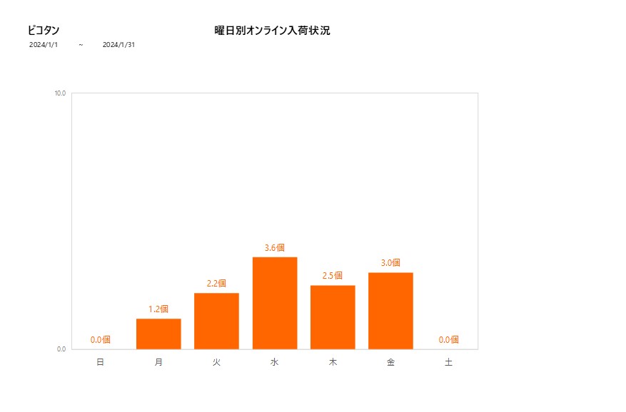 次に曜日別出品数です。各曜日に平均して一日当たり何個の出品があったかを見ています。