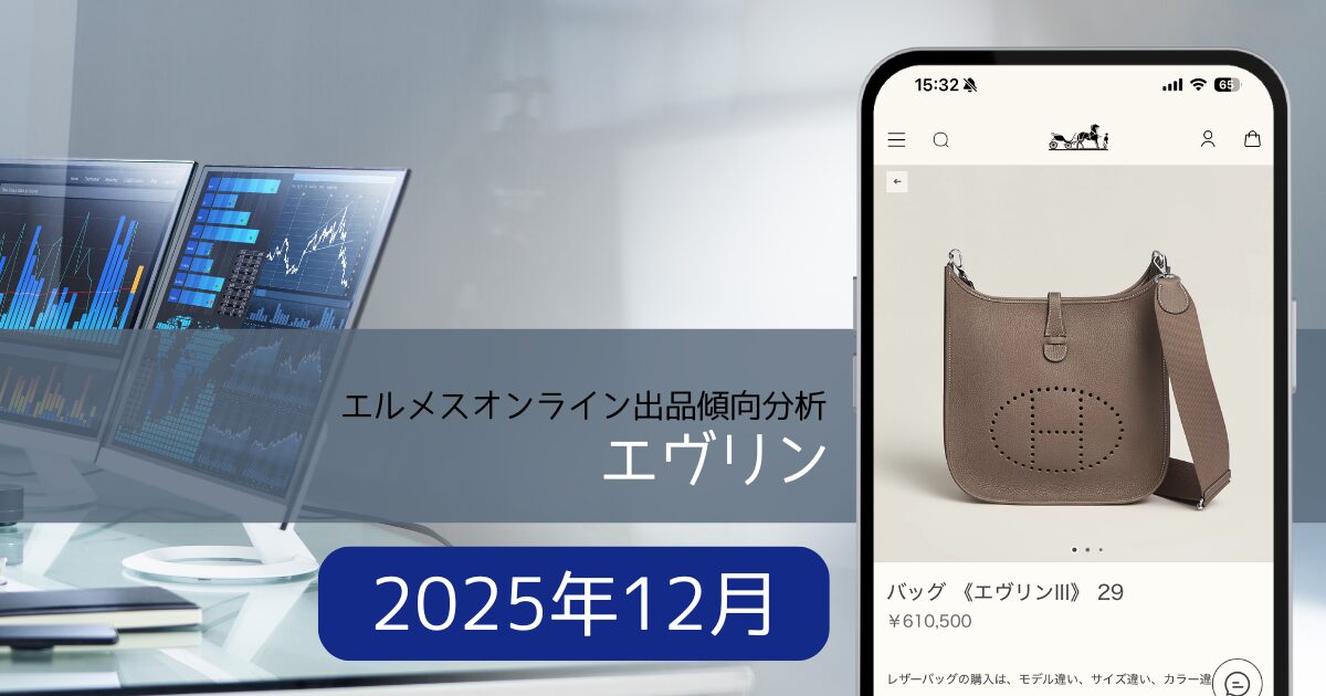 2025年12月の1ヶ月間に、31個のエヴリンがエルメスオンラインで出品されているのを確認しました。