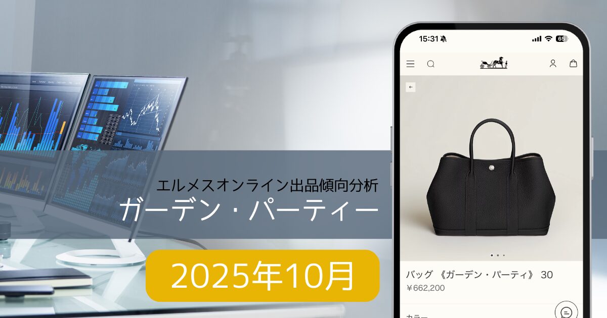 2025年10月の1ヶ月間に、29個のガーデンパーティがエルメスオンラインで出品されているのを確認しました。