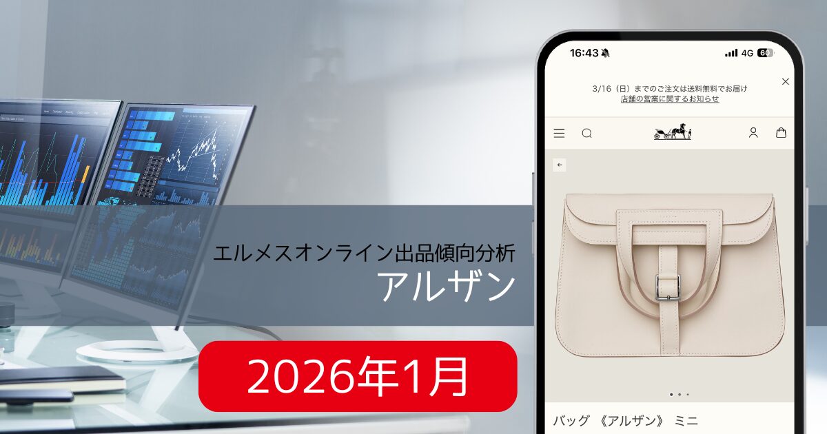 2026年1月の1ヶ月間に、7個のアルザンがエルメスオンラインで出品されているのを確認しました。