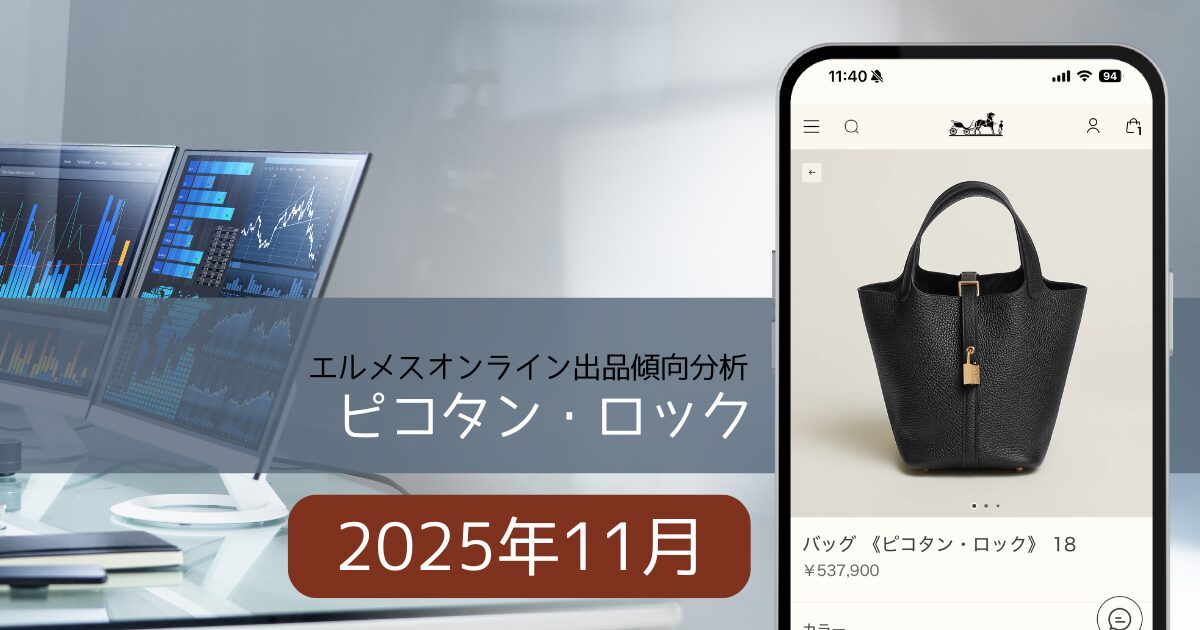 2025年11月の1ヶ月間に、52個のピコタンがエルメスオンラインで出品されているのを確認しました。
